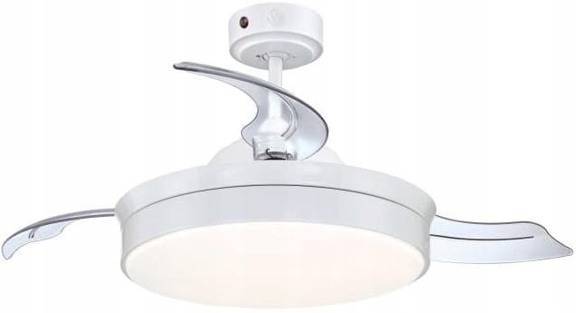 Westinghouse Tori o średnicy 105 cm to nowoczesny wentylator sufitowy przeznaczony do pomieszczeń o powierzchni do 10 m². Chowane łopaty z przezroczystego tworzywa i opalizowany klosz nadają mu lekką, minimalistyczną formę.