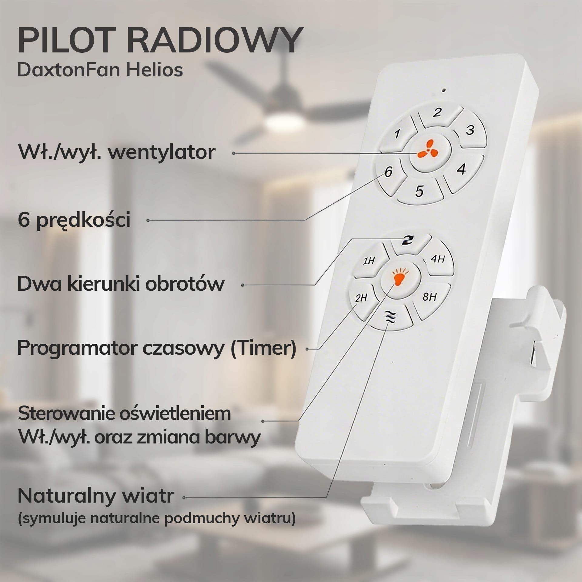 - 6 prędkości obrotowych regulowanych pilotem